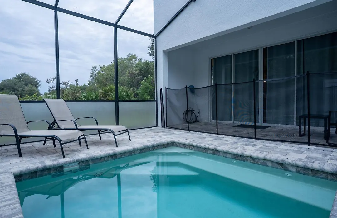 Family Pool Home In Hidden Forest Orlando comes with a bathroom with a separate toilet, a shower, and a washing machine. Bathrooms are also featuring dryers and towels for your comfort.